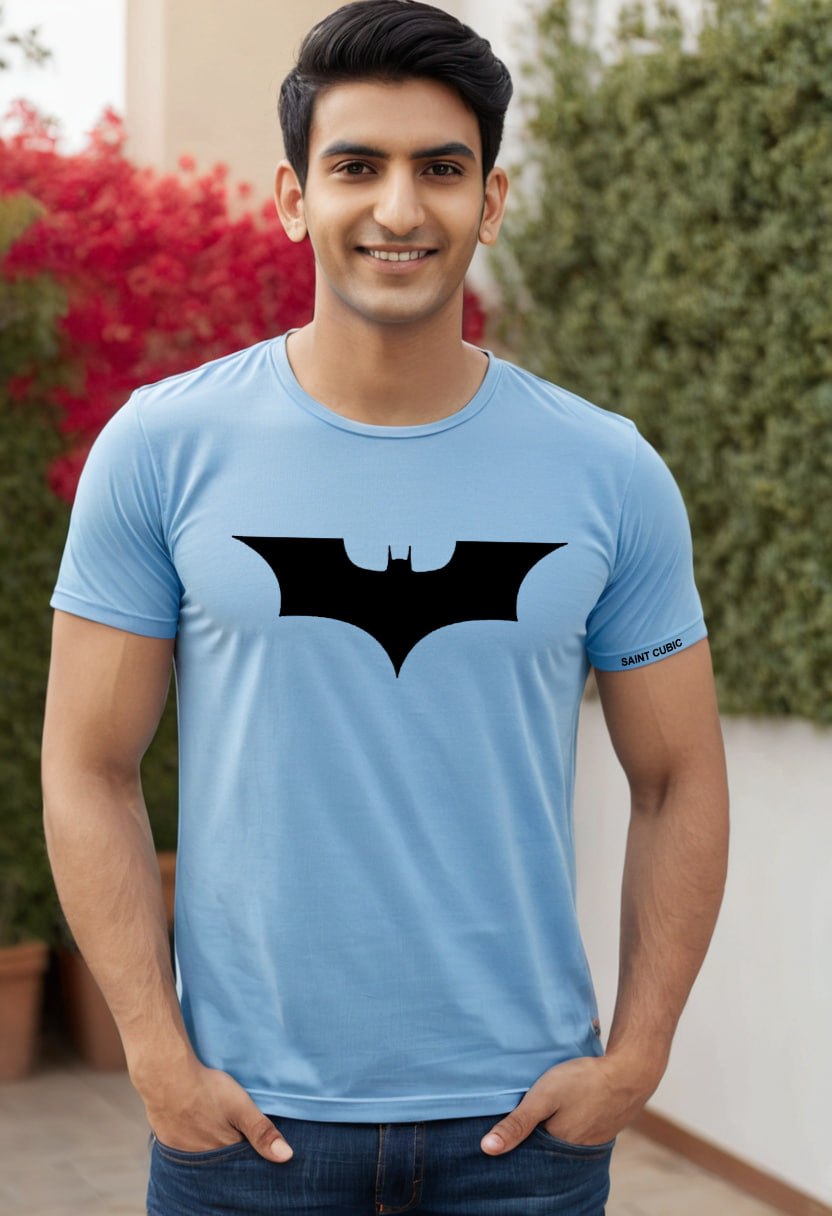 Batman Logo Regular size T-Shirt. Style this Sky Blue t-shirt with jeans or cargo.